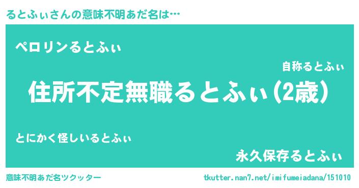 | 男性向けラノベタイトル風あだ名 | 『この素晴らしい世界にるとふぃを!』 |