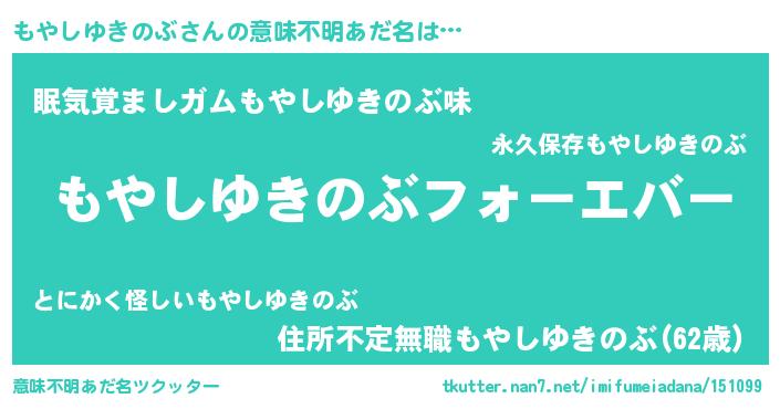 | 肩書あだ名 | 『もやしゆきのぶ総理大臣』 |