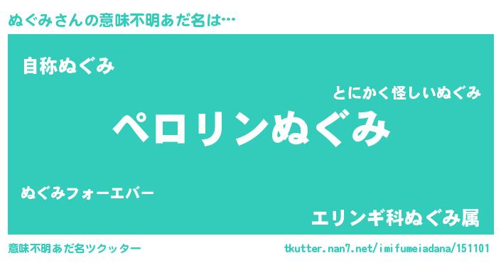 | 男性向けラノベタイトル風あだ名 | 『ぬぐみの憂鬱』『はたらくぬぐみさま!』 |