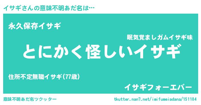 | 女子向けラノベタイトル風あだ名 | 『イサギの卵を拾いまして』 |