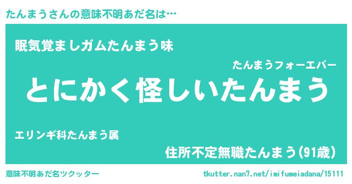 | 男性向けラノベタイトル風あだ名 | 『たんまうの嫁は女の子じゃないと思った?』 |