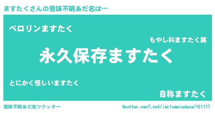 | ヘコむあだ名 | 『ますたく(苦笑)』『ますっふぃ~』 |