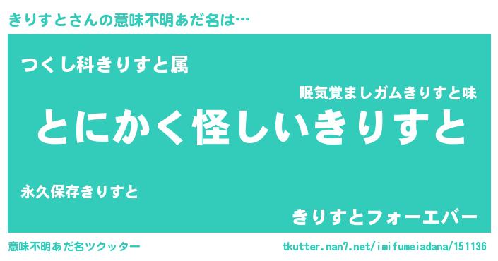 | ヒーロー風カッコイイあだ名 | 『黄金騎士キリ』『ウルトラきりすとマン』 |