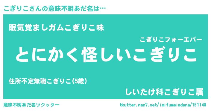 | 男性向けラノベタイトル風あだ名 | 『こぎりこの嫁は女の子じゃないと思った?』 |