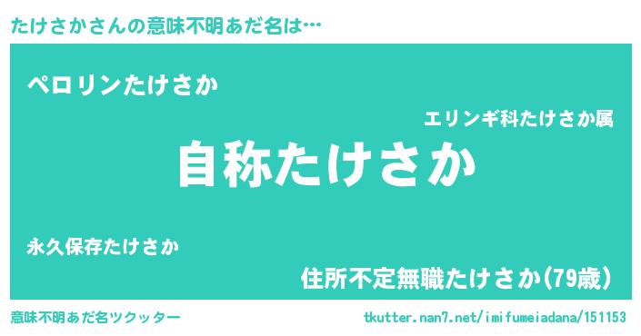 | ヘコむあだ名 | 『たけにー』『たけさか(震え声)』 |