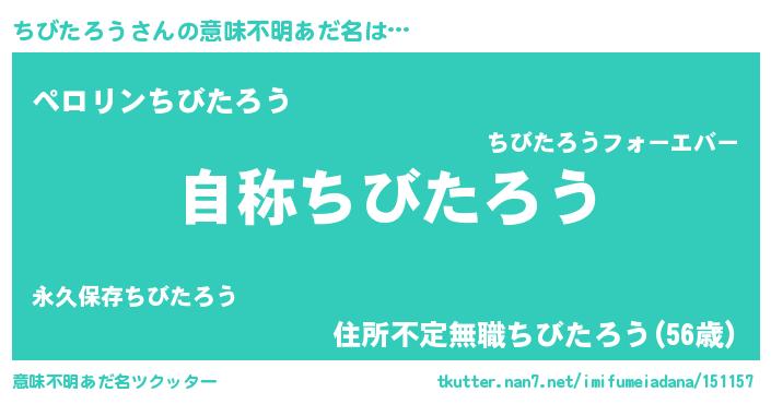| 男性向けラノベタイトル風あだ名 | 『Re:ちびたろうから始める異世界生活』 |
