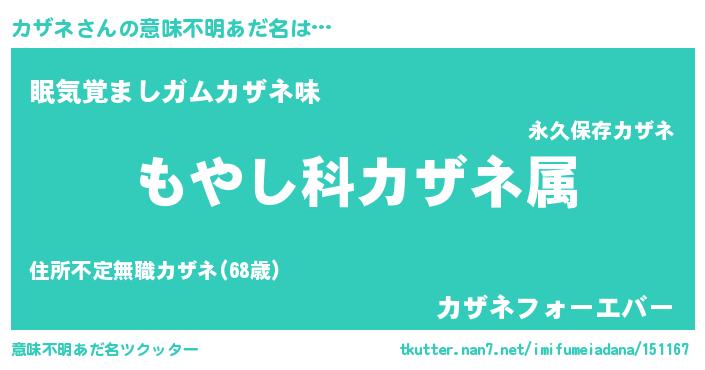 | ヘコむあだ名 | 『なまこ酢』『カザネ(遠い目)』 |