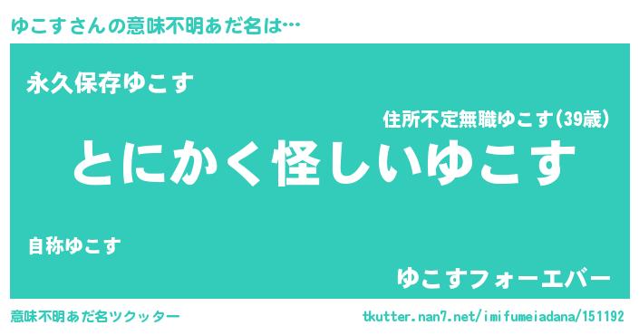 | ポケモン風あだ名 | 『ヒユコス』『ゼニユコ』『ユーコイ』 |