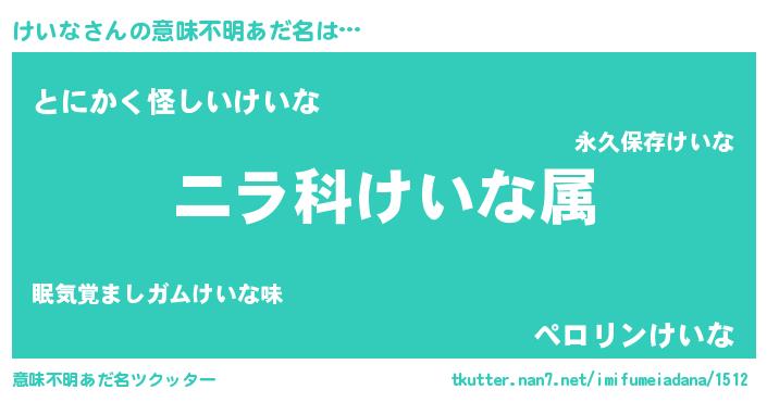 | 男性向けラノベタイトル風あだ名 | 『うちのけいなが世界を掌握している!』 |