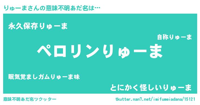 | ヘコむあだ名 | 『りゅにー』『りゅーま(小並感)』 |