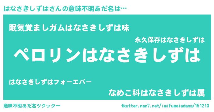 | ヘコむあだ名 | 『はなふぇ~』『はなさきしずは(遠い目)』 |