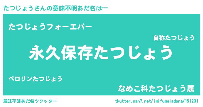 | 胡散臭い通販商品みたいなあだ名 | 『来世でも幸せになれる水素水…その名も「たつじょう」』 |