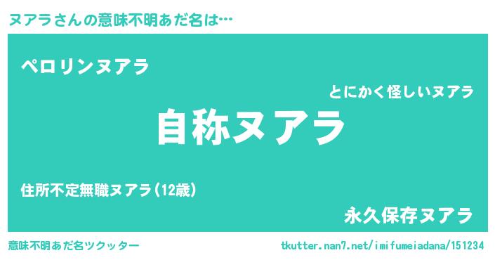 | 女子向けラノベタイトル風あだ名 | 『ヌアラなんてお断りですっ。』 |