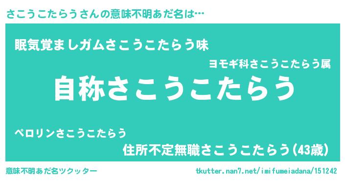 | 女子向けラノベタイトル風あだ名 | 『さこうこたらうなんてお断りですっ。』 |