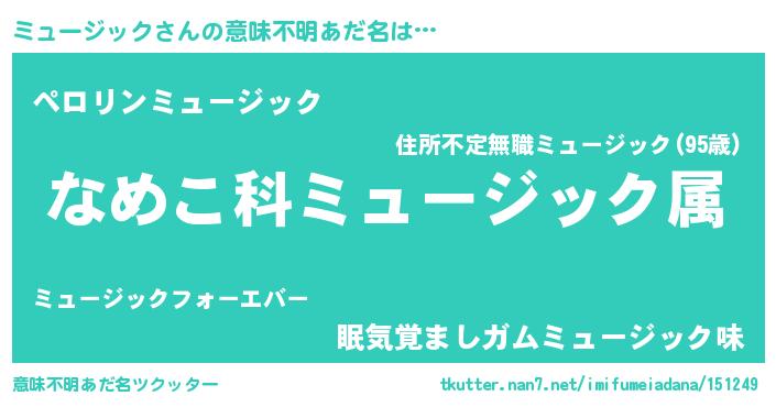 | 男性向けラノベタイトル風あだ名 | 『転生したらミュージックだった件』 |