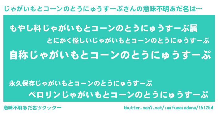 | 胡散臭い通販商品みたいなあだ名 | 『テレビで話題の冬虫夏草…その名も「じゃがいもとコーンのとうにゅうすーぷ」』 |