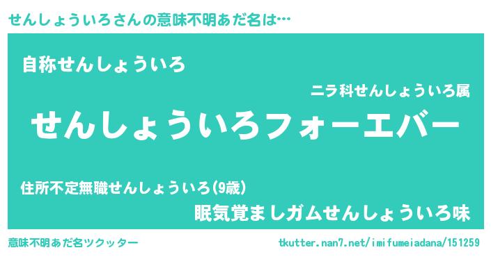 | ファンタジー風あだ名 | 『エターナルセンショウイロー』 |