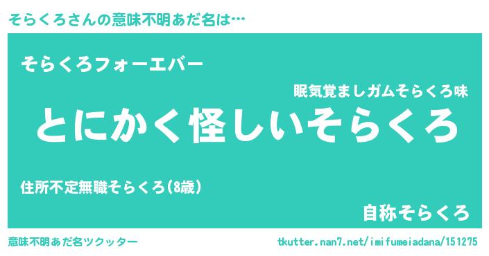 | 男性向けラノベタイトル風あだ名 | 『ダンジョンにそらくろを求めるのは間違っているだろうか』 |