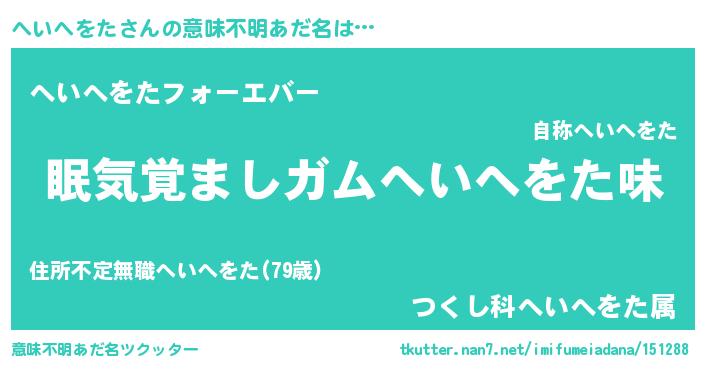 | ヘコむあだ名 | 『なまこ酢』『へいを』『へいにゅー』 |