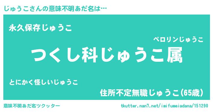 | ヘコむあだ名 | 『じゅうこ(笑)』『じゅっふぃ~』 |