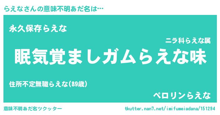 | ヘコむあだ名 | 『らえな(笑)』『らえにー』 |