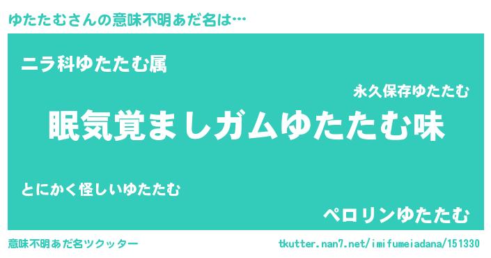 | ヒーロー風カッコイイあだ名 | 『正義の使者ゆたたむ』『ネオユタタム』 |
