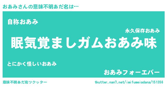 | ヒーロー風カッコイイあだ名 | 『天空の使者おあみ』『超時空戦士オアミ』 |