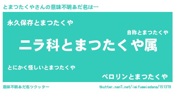 | 胡散臭い通販商品みたいなあだ名 | 『前代未聞の健康食品…その名も「とまつたくや」』 |