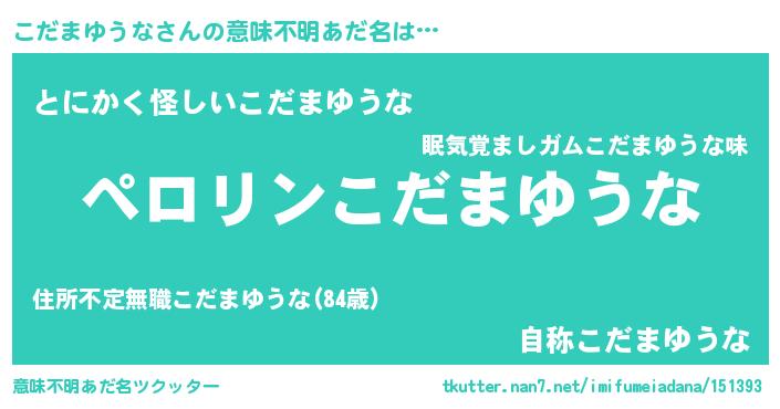 | 女子向けラノベタイトル風あだ名 | 『(仮)こだまゆうなのやんごとなき事情』 |