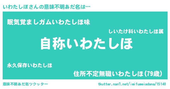 | 男性向けラノベタイトル風あだ名 | 『Re:いわたしほから始める異世界生活』 |