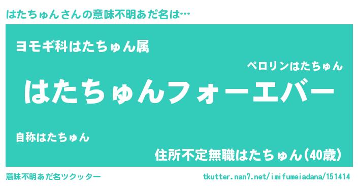 | ファンタジー風あだ名 | 『エターナルハタチュンー』『ハタフェル』 |