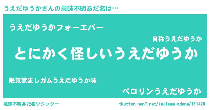 | 女子向けラノベタイトル風あだ名 | 『うえだゆうかの卵を拾いまして』 |