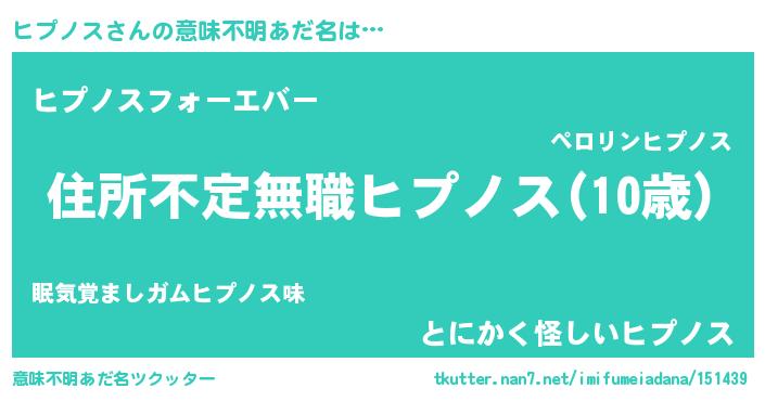 | 男性向けラノベタイトル風あだ名 | 『この素晴らしい世界にヒプノスを!』 |