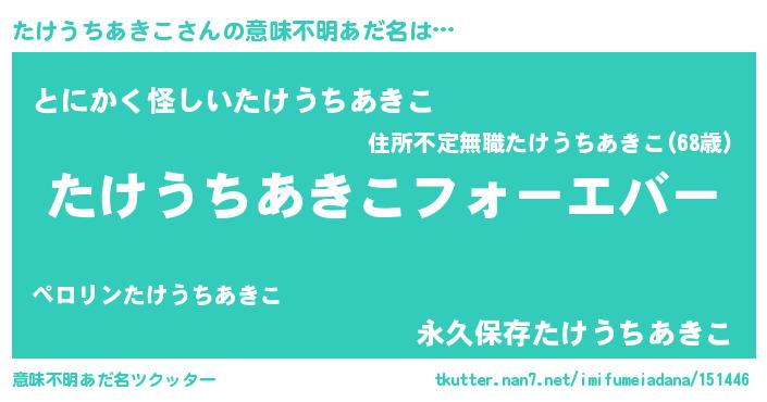 | 肩書あだ名 | 『たけうちあきこ総理大臣』 |