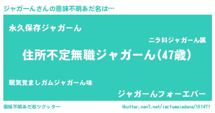 | 料理風あだ名 | 『ジャガーんのカルパッチョ風』 |