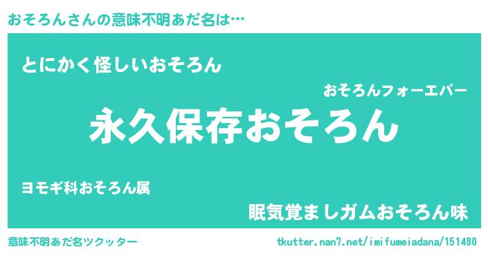 | 男性向けラノベタイトル風あだ名 | 『おそろんという概念が存在しない退屈な世界 』 |