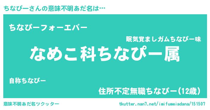 | 男性向けラノベタイトル風あだ名 | 『転生したらちなぴーだった件』 |