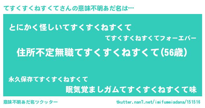| 男性向けラノベタイトル風あだ名 | 『てすくすくねすくてに滅ぼされるだけの簡単なお仕事です』 |