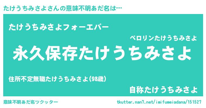| 男性向けラノベタイトル風あだ名 | 『たけうちみさよという概念が存在しない退屈な世界 』 |