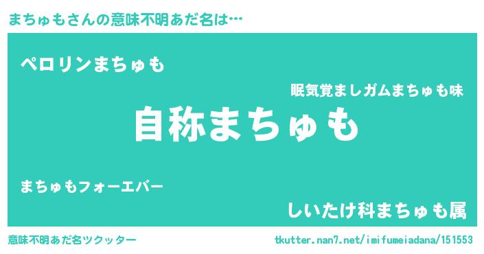 | 男性向けラノベタイトル風あだ名 | 『Re:まちゅもから始める異世界生活』 |