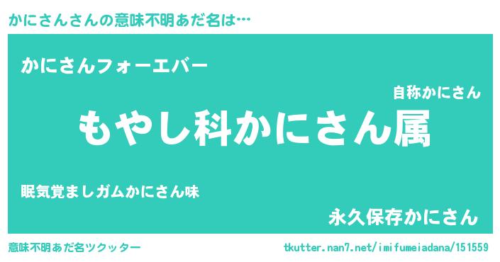 | ヒーロー風カッコイイあだ名 | 『ウルトラかにさんマン』『ネオカニサン』 |