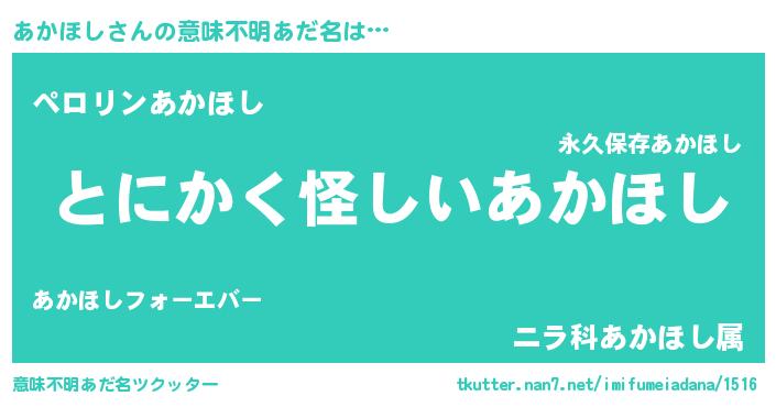 ヘコむあだ名 | 『あかっぺ』『あかふぇ~』『つくし』 |