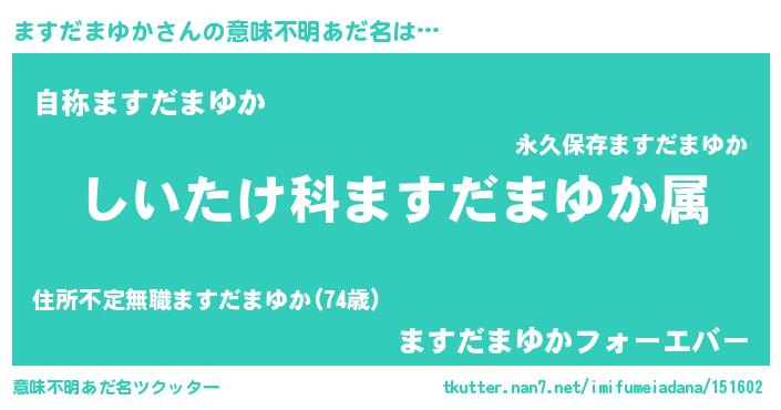 | 胡散臭い通販商品みたいなあだ名 | 『ガンによく効くアガリクス…その名も「ますだまゆか」』 |