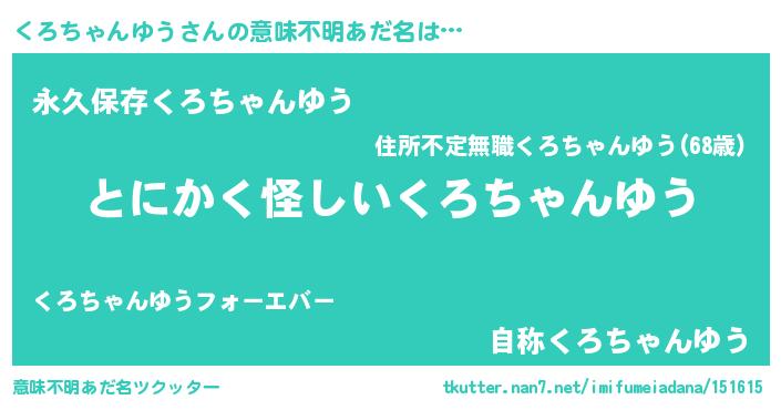 | 胡散臭い通販商品みたいなあだ名 | 『信頼と実績のネックレス…その名も「くろちゃんゆう」』 |