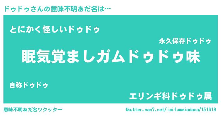 | ヒーロー風カッコイイあだ名 | 『正義の使者ドゥドゥ』『幻影騎士ドゥ』 |