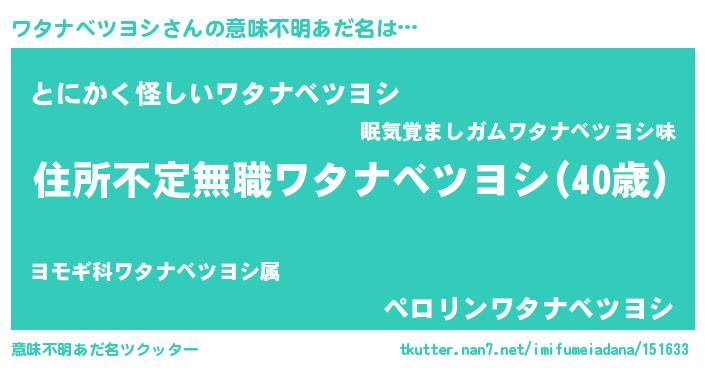 | 料理風あだ名 | 『ワタナベツヨシのカルパッチョ風』 |