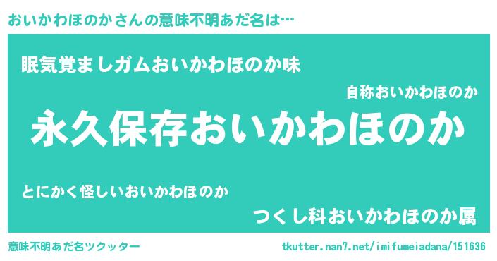 | ヘコむあだ名 | 『おいかわほのか(笑)』『おいを』 |