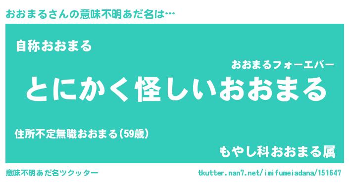 | 女子向けラノベタイトル風あだ名 | 『おおまるは平凡を望む』 |