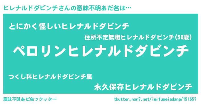 | 男性向けラノベタイトル風あだ名 | 『ヒレナルドダビンチの憂鬱』 |
