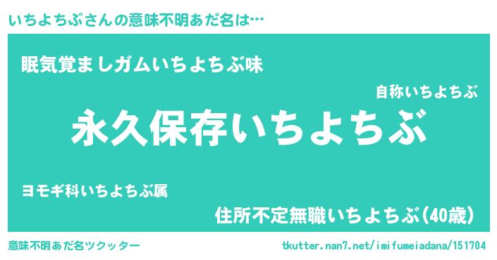 | 男性向けラノベタイトル風あだ名 | 『いちよちぶという概念が存在しない退屈な世界 』 |